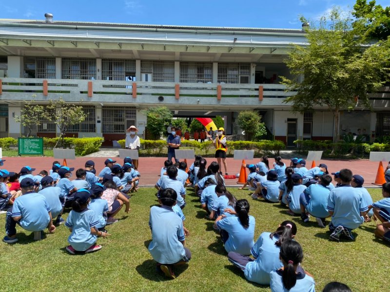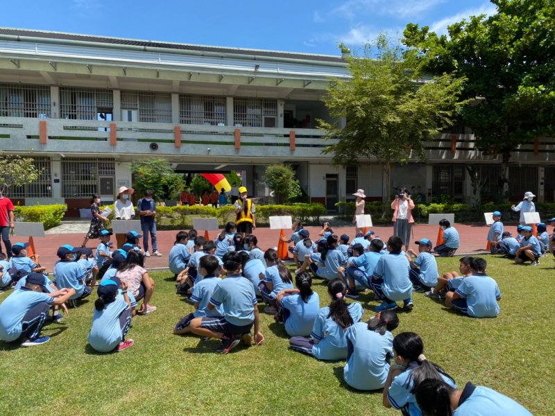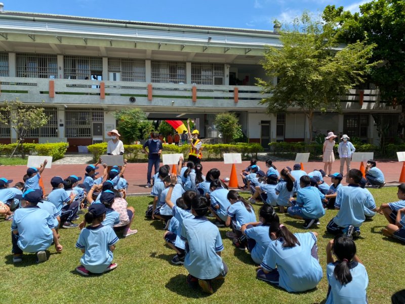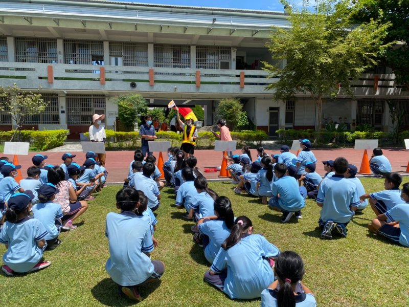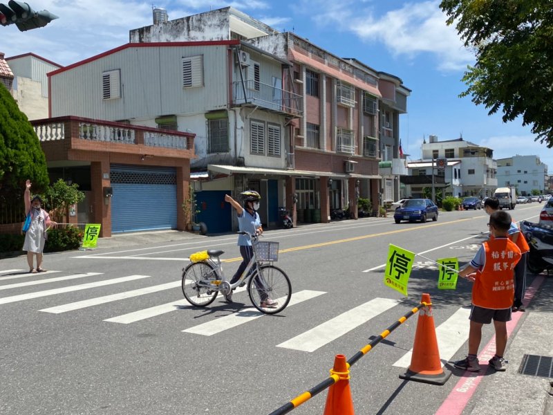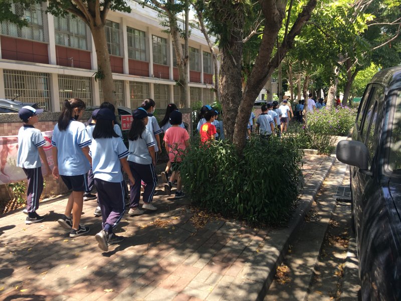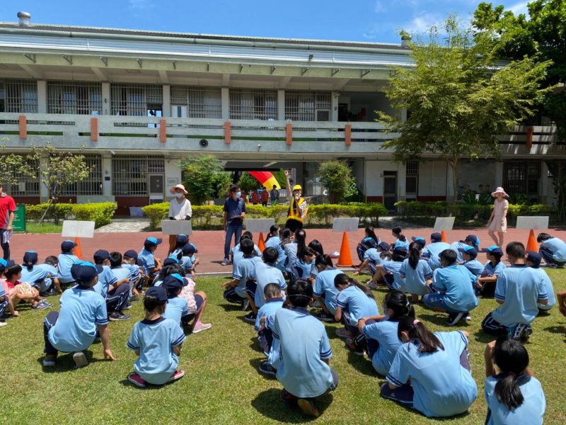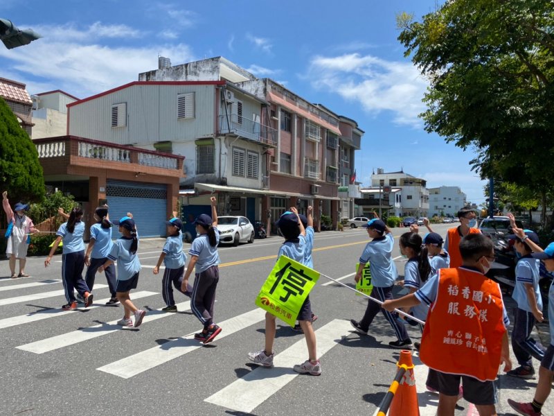 開學日當天進行放學路隊編組、做交通安全宣導:著亮衣、遵守交通規則、舉手穿越馬路、自行車配備等,最後各路隊指導老師帶領學生實際演練、建立正確的用路觀念。