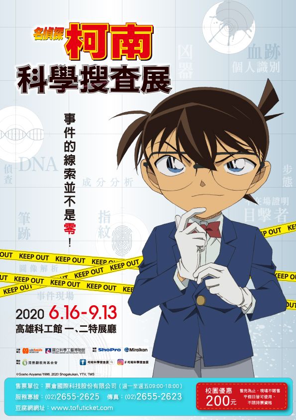 | (三) | 展覽介紹:引進日本超人氣的特別企劃,「名偵探柯南科學搜查展」在日本陸續巡迴了東京、名古屋、福岡、大阪等地後,於2019年首次海外移展就在台北站吸引破10萬人潮觀展,今年台灣巡展第二站就在高雄科工館!快跟著柯南一起推理,利用科學的搜查找出事件的真相!情境描述毛利小五郎成為殺人事件的嫌疑犯,參加者的任務就是扮演偵探,找出兇手! |