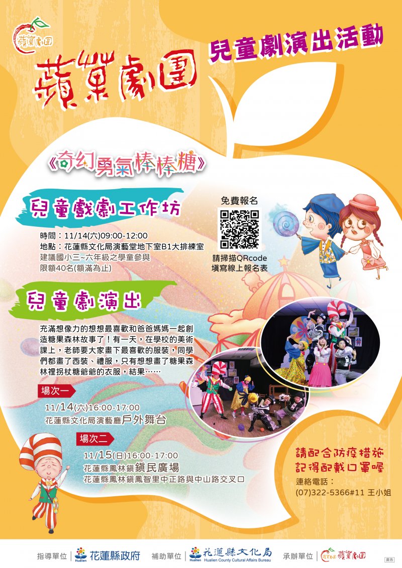 花蓮縣文化局辦理蘋果劇團《奇幻勇氣棒棒糖》兒童 劇演出(詳如附件)