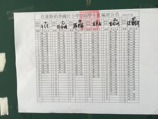 花蓮縣稻香國民小學105學年度編班公告 105.07.29