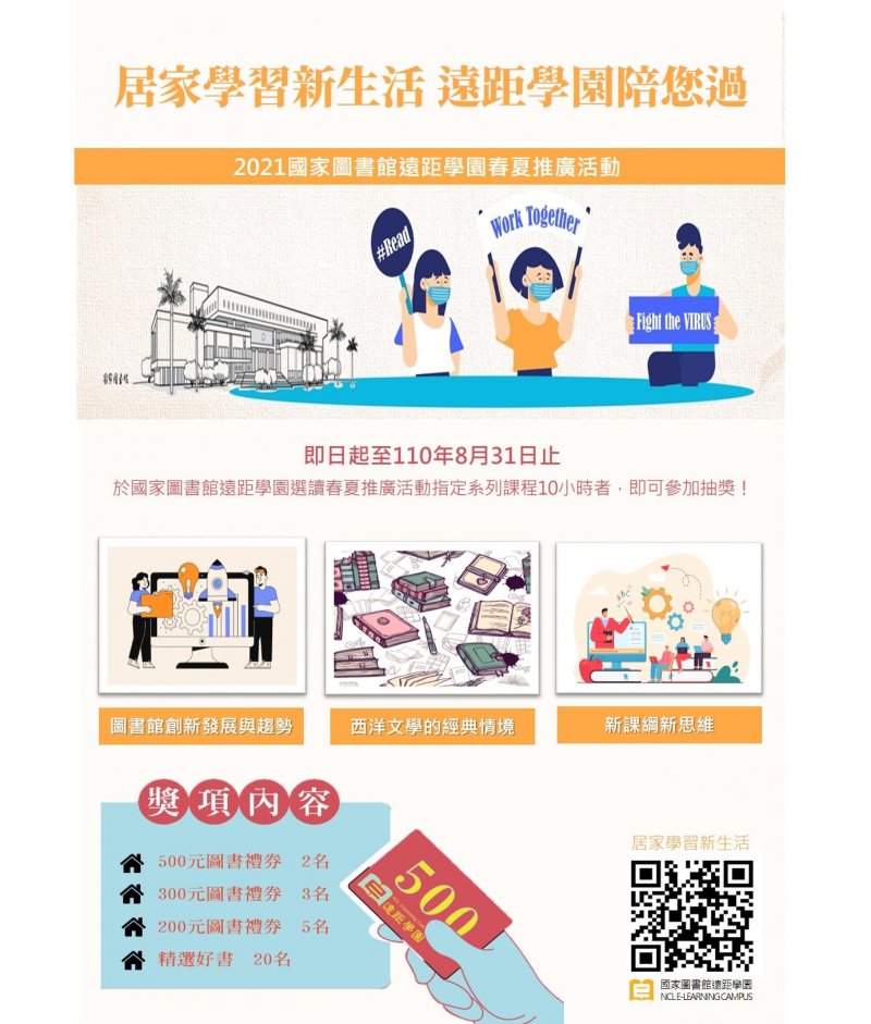 國家圖書館辦理「居家學習新生活‧遠距學園陪您過-110年度春夏數位學習推廣活動」