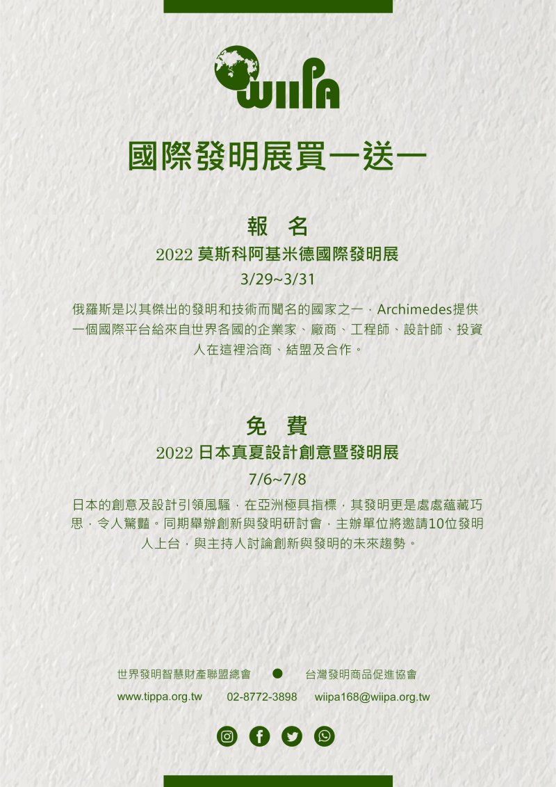 「2022莫斯科阿基米德國際發明展」買一送一補助專案