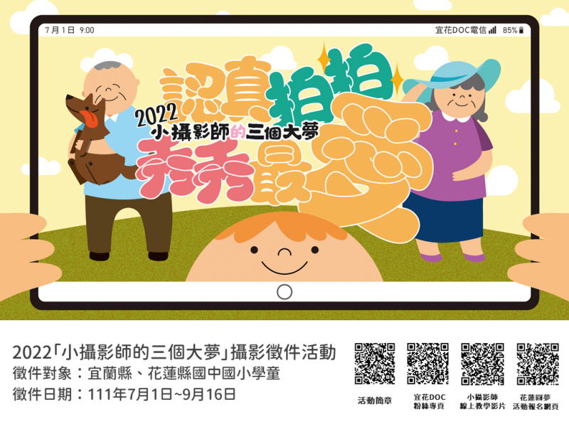 | 主旨: | 有關本府辦理「2022小攝影師的三個大夢」攝影徵件活動,檢附活動主視覺圖及徵件辦法各一份,請各校協助轉知所屬師生踴躍報名參加,請查照。 |
