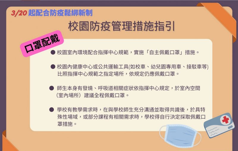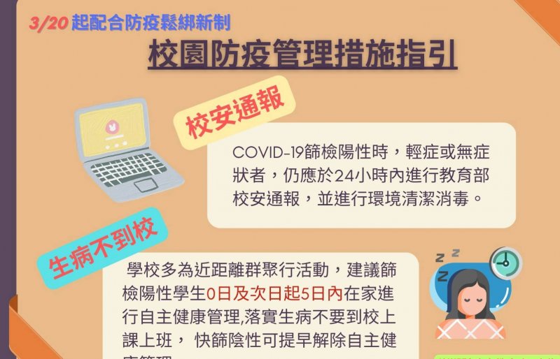 COVID-19輕症患者就醫建議及3/20防疫鬆綁新制措施供師生們參閱