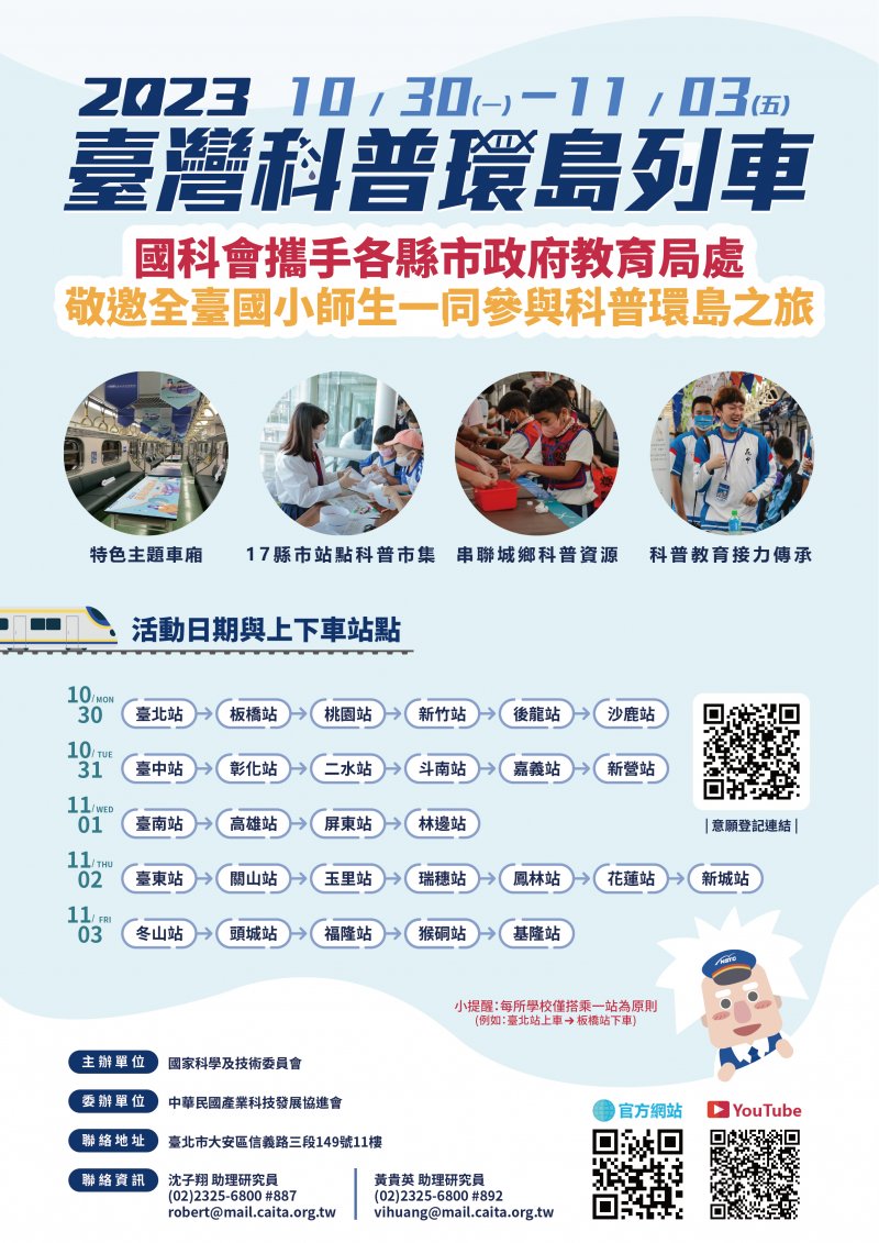 「2023年臺灣科普環島列車」訂於112年10月30日至11月3日舉辦