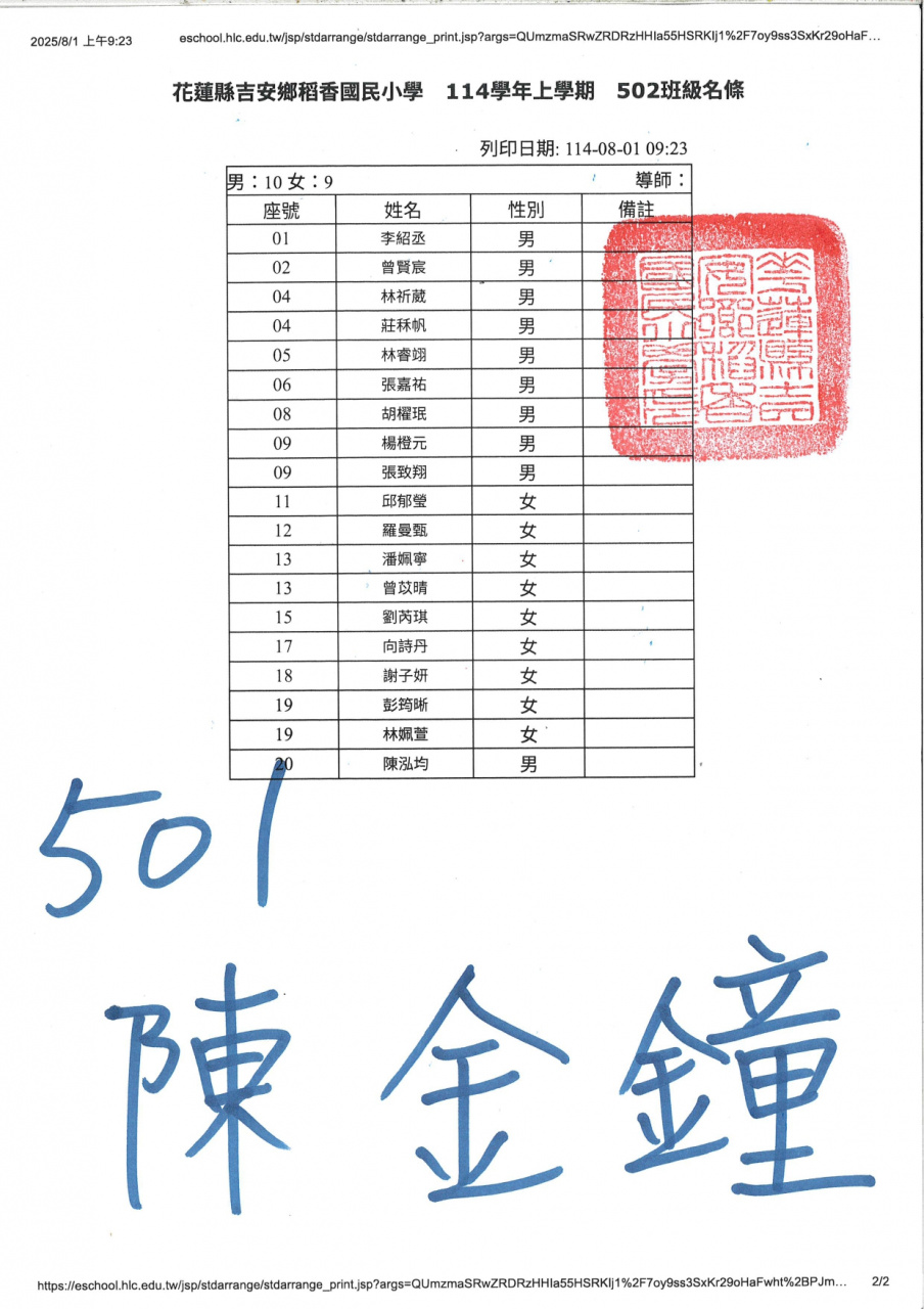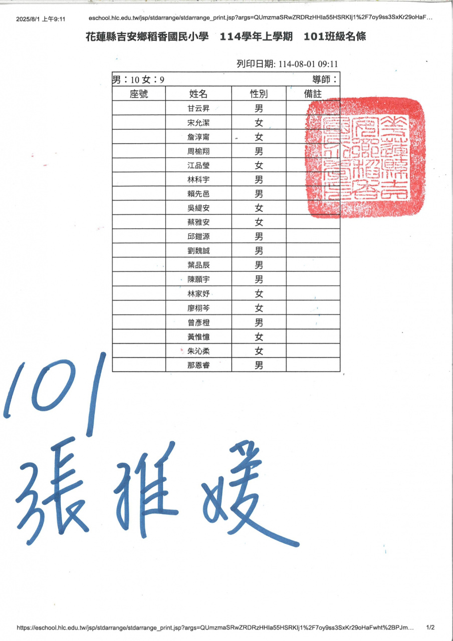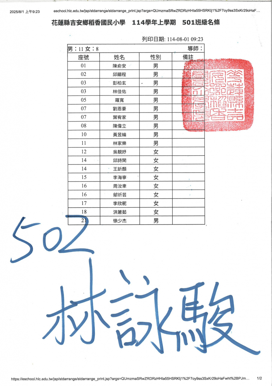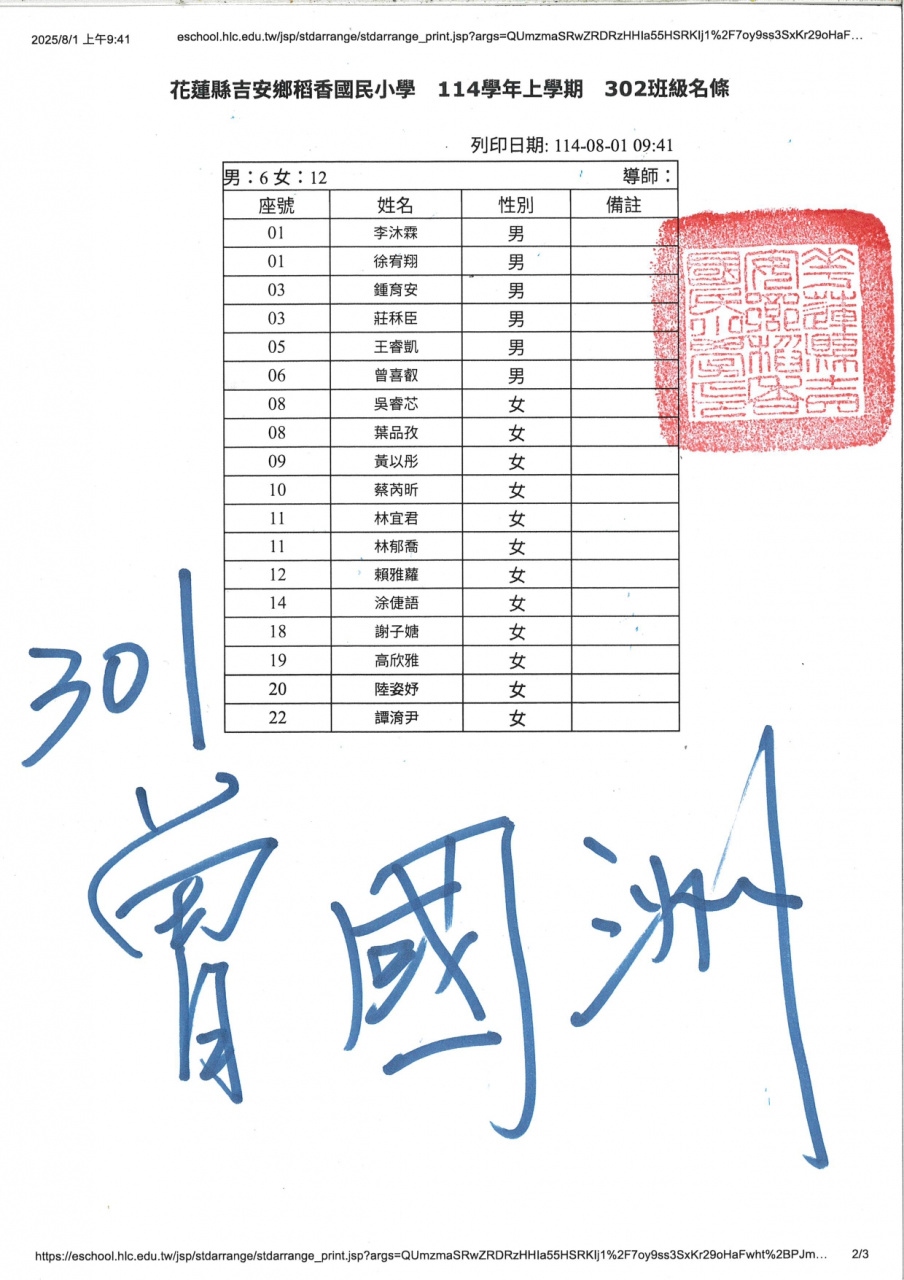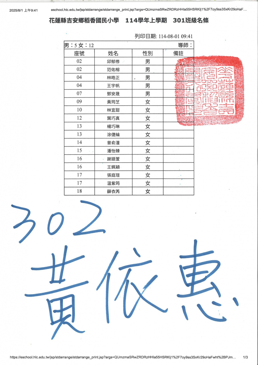 114學年度新生暨三、五年級編班名單(公告)